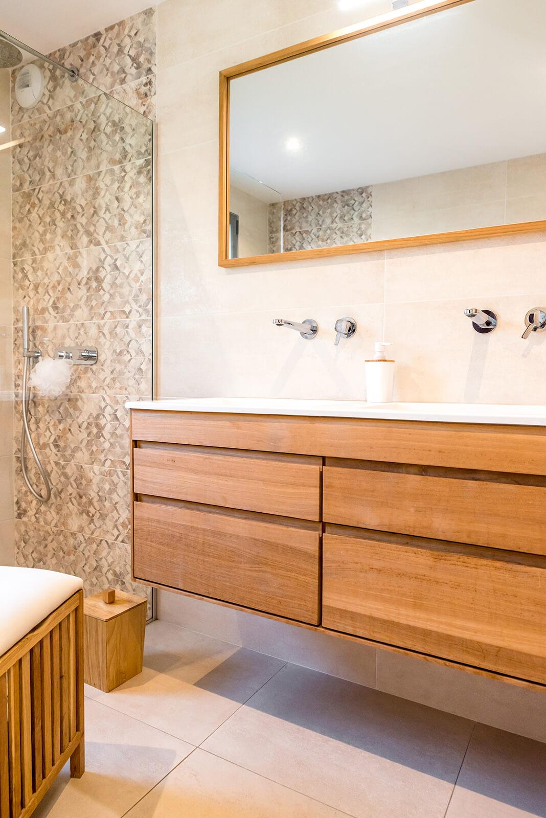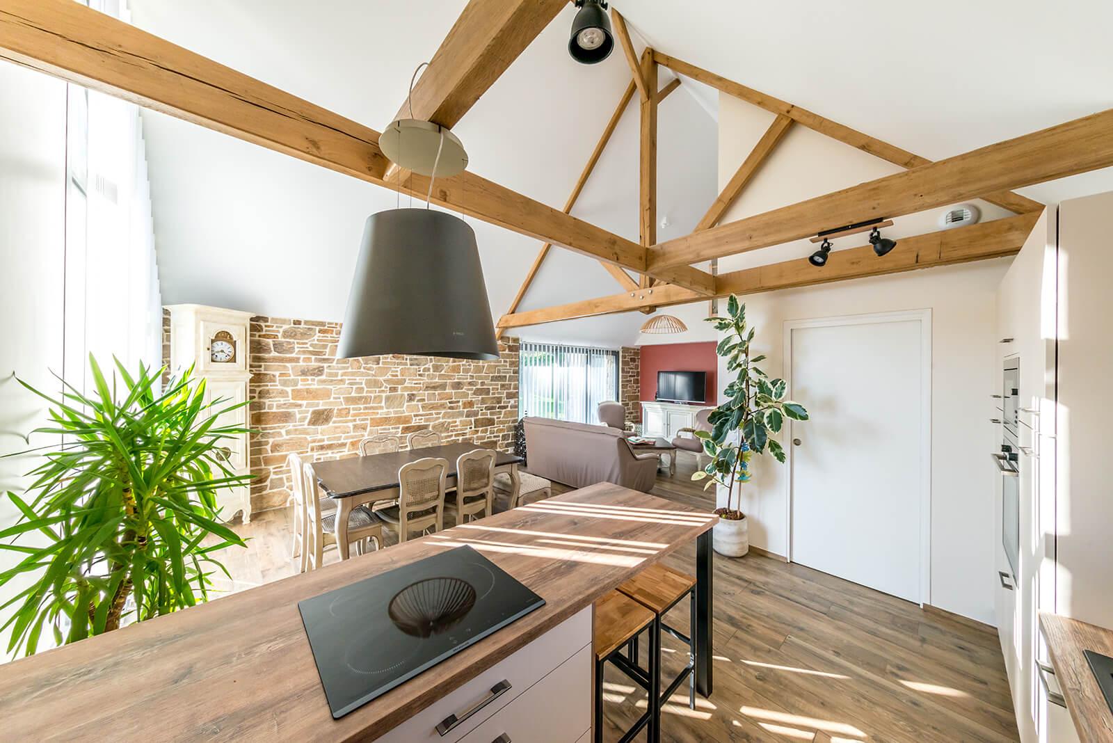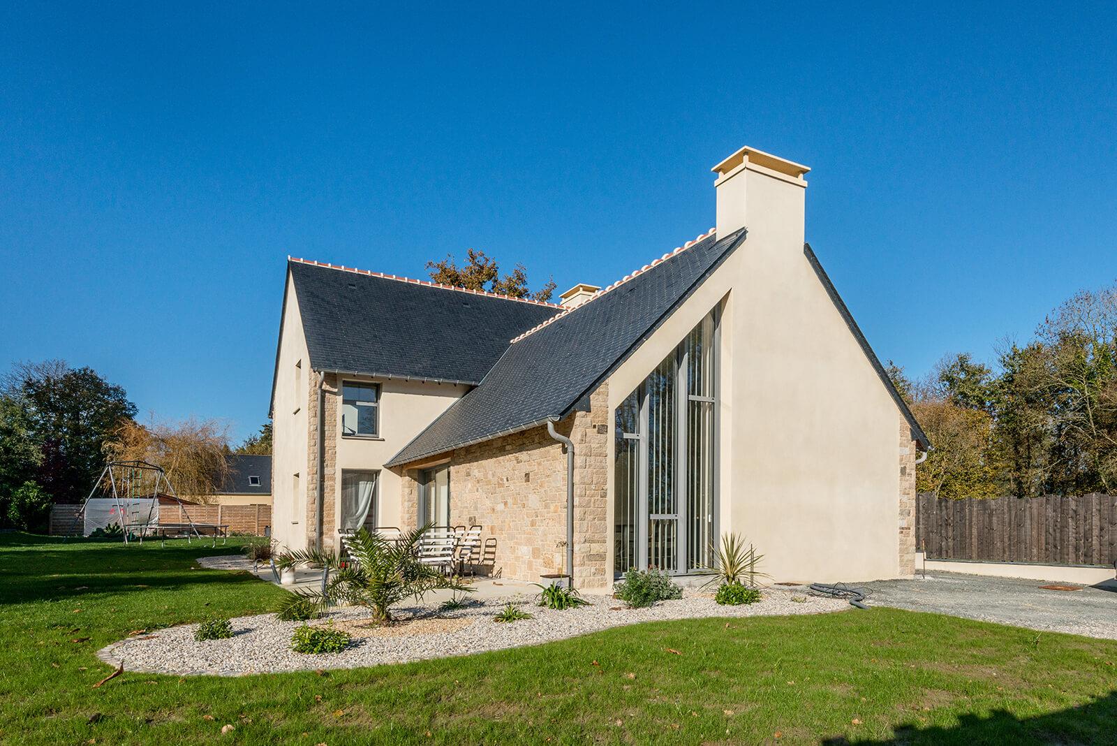 La lumière est saisie par des grandes ouvertures vers l’Ouest et le Sud pour le séjour et des ouvertures vers l’Ouest et le Nord pour les chambres.