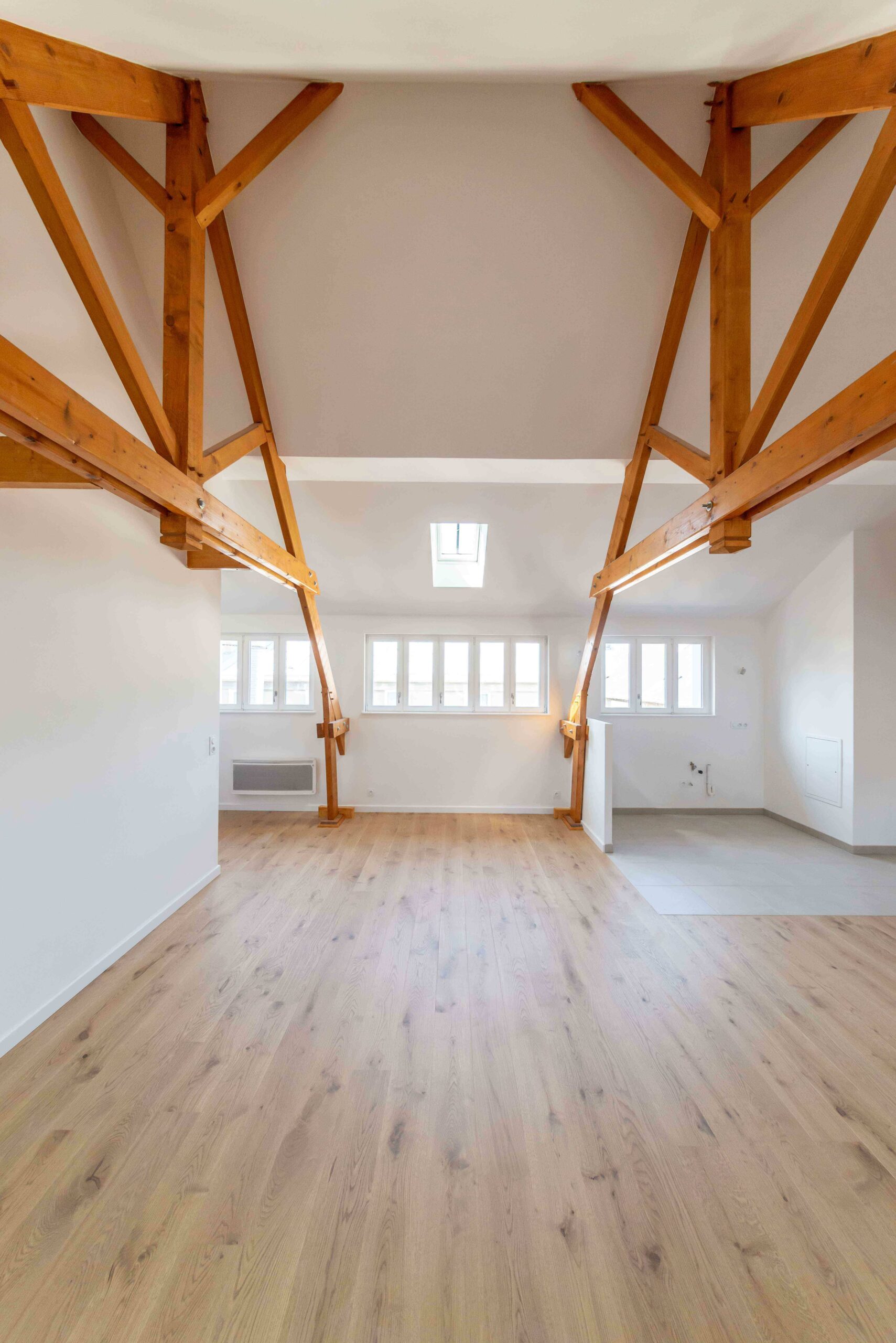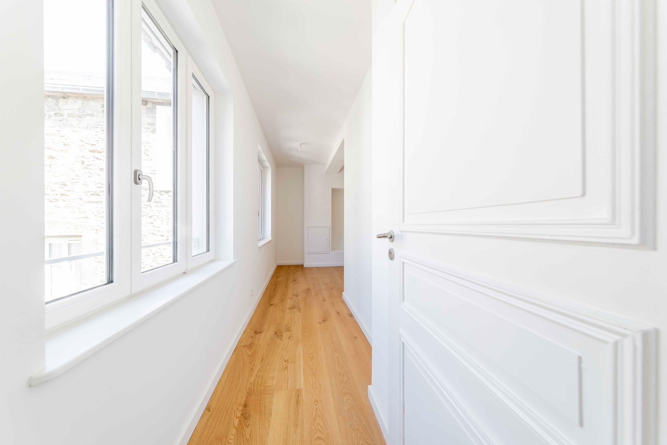 Le remplacement de l’ensemble des planchers intérieur à permis l’aménagement de 5 appartements sur trois niveaux. L’activité du restaurants en rez-de-chaussée et de l’hôtel mitoyen a pu continuer tout au long de ce chantier, caractérisé par la réalisation en site occupé et l’accès complexe d’intra muros.